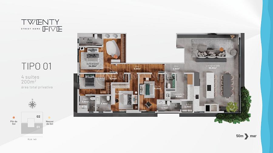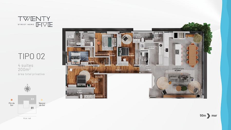 200,00 m² de área privativa